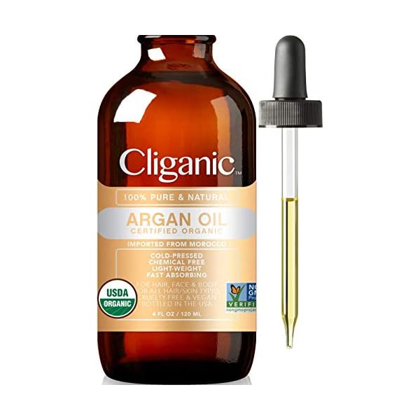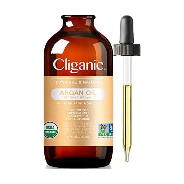 Cliganic Organic Argan Oil, 100% Pure | for Hair, Face & Skin | Natural Cold Pressed Carrier Oil, Imported from Morocco