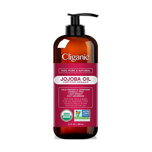Cliganic Organic Jojoba Oil 16 oz, 100% Pure | Bulk, Natural Cold Pressed Unrefined Hexane Free for Hair & Face | Base Carrier Oil