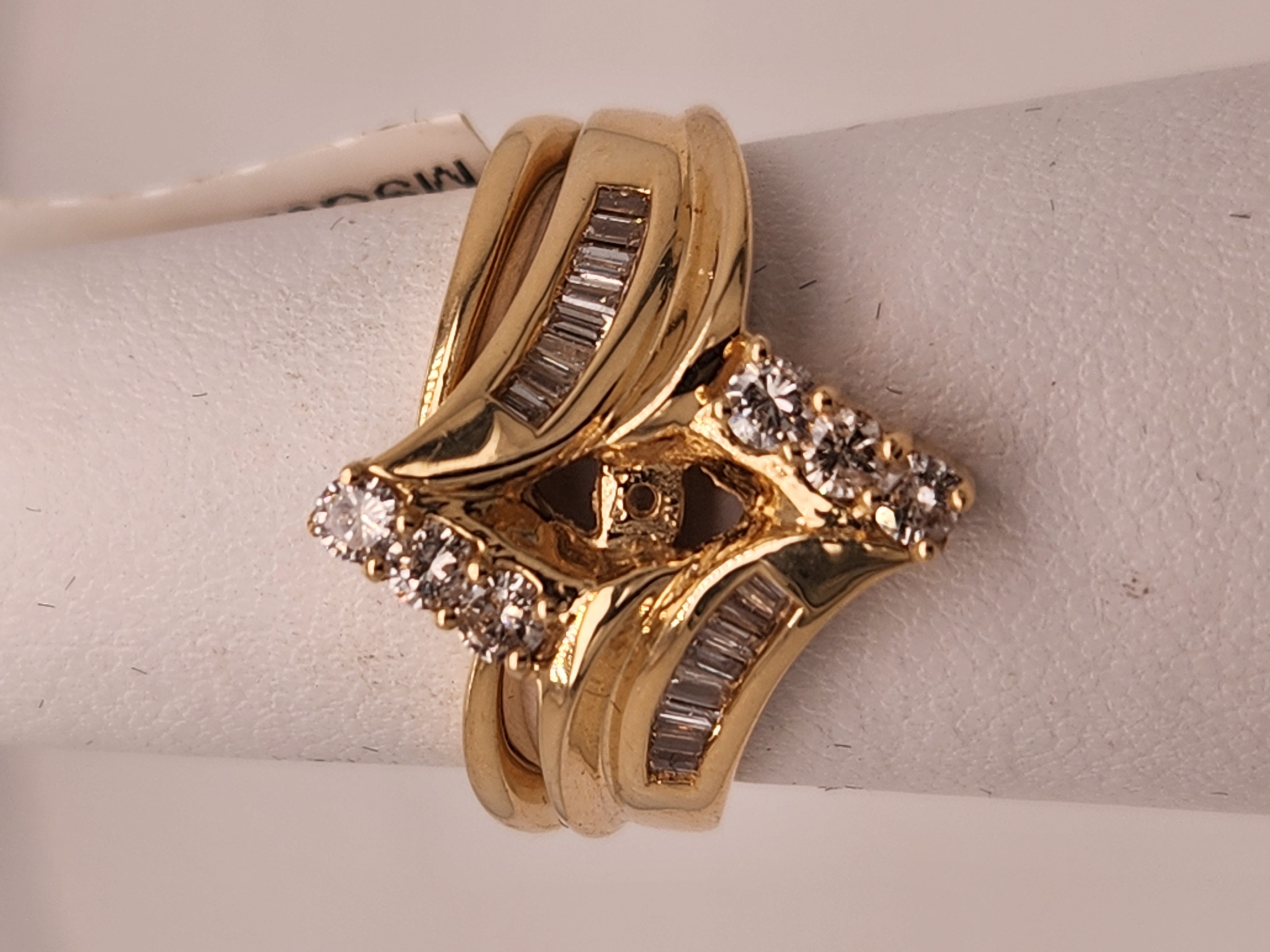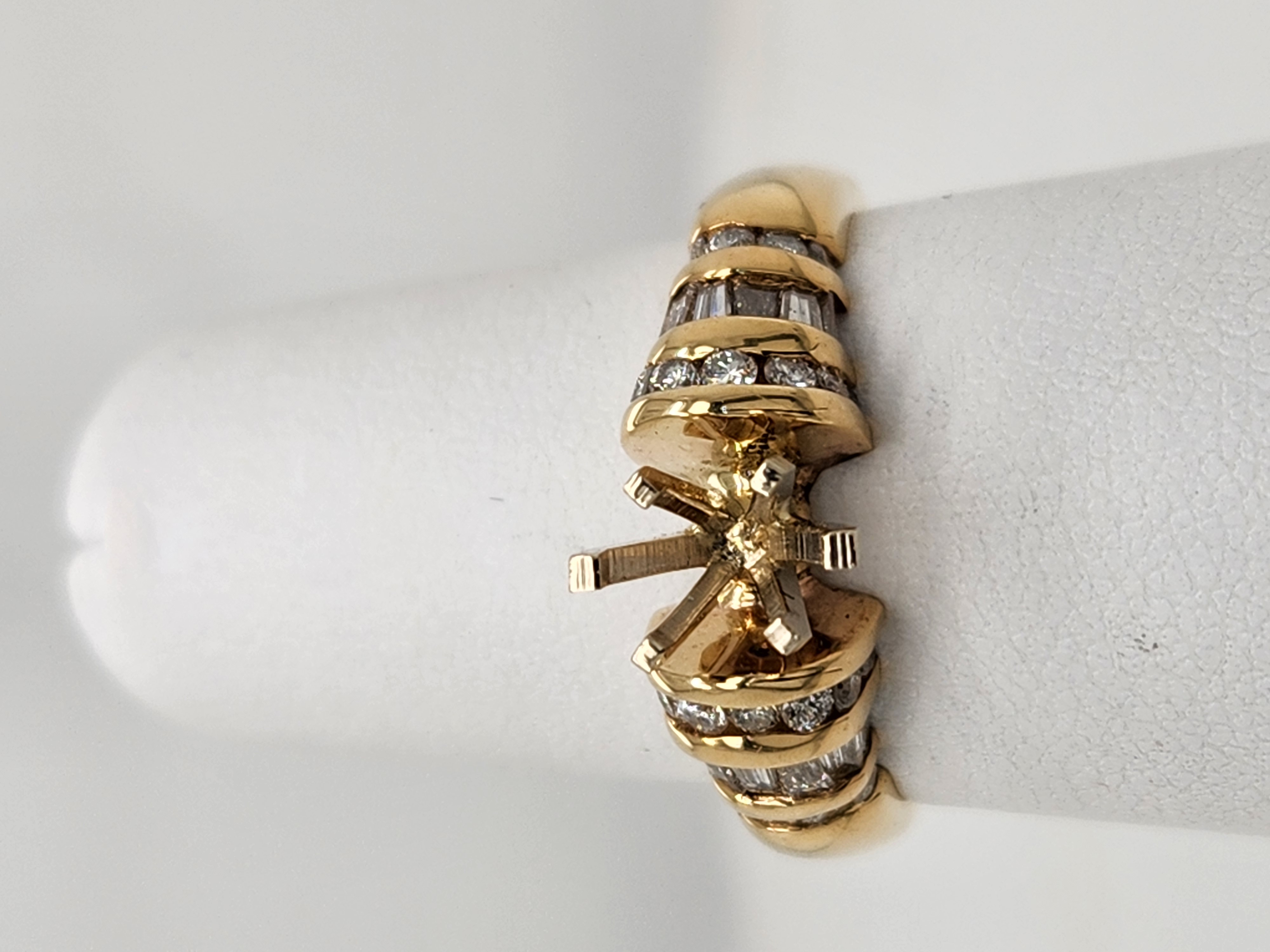 14kt Lady’s Multiple Row Channel Set Round & Baguette Diamond Semi Mount Ring