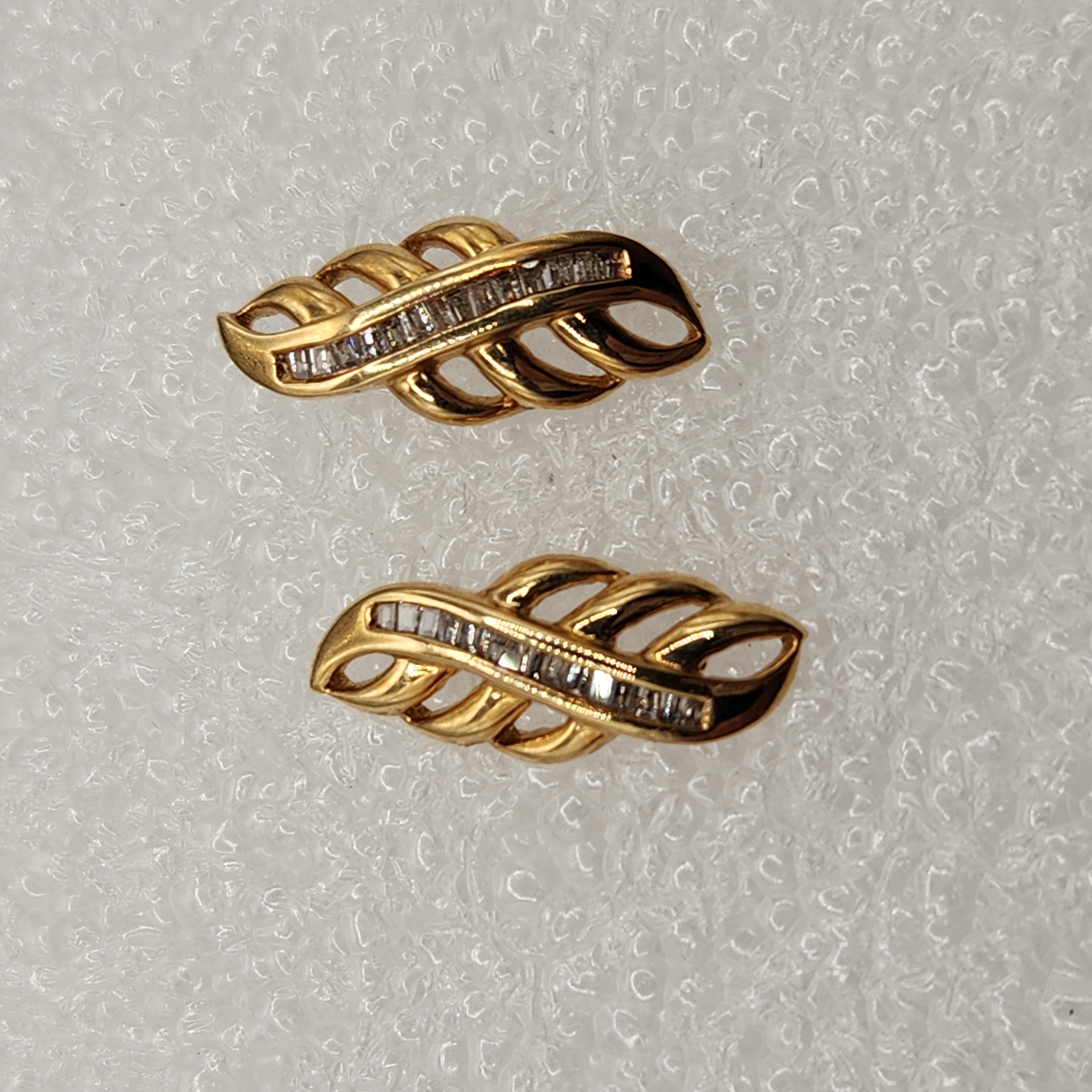 14kt Gold Lady’s Leaf Design Baguette Diamond Earrings 2/.25ctw