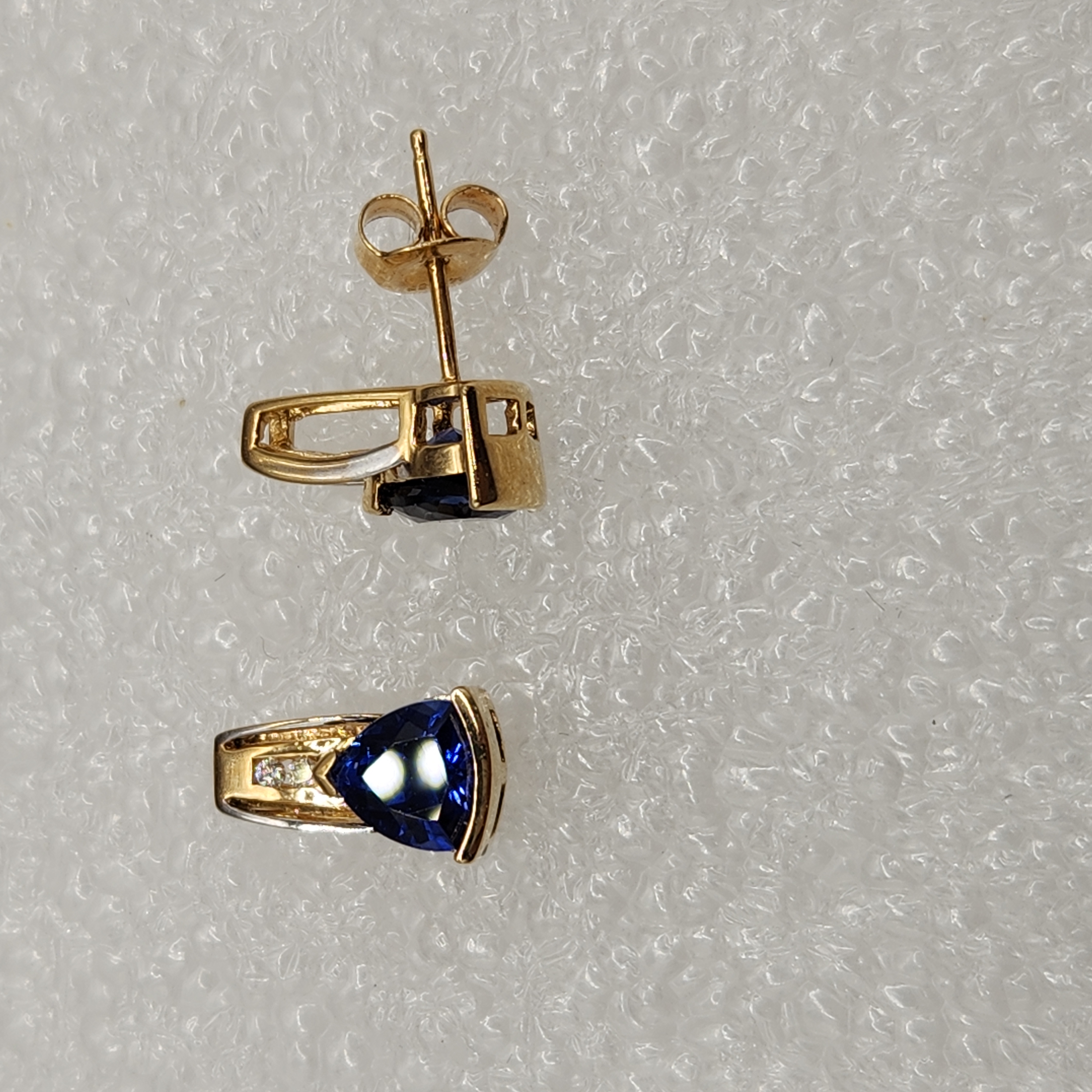 14kt Gold Lady’s Lab Created Trillion Blue Sapphires & Diamonds