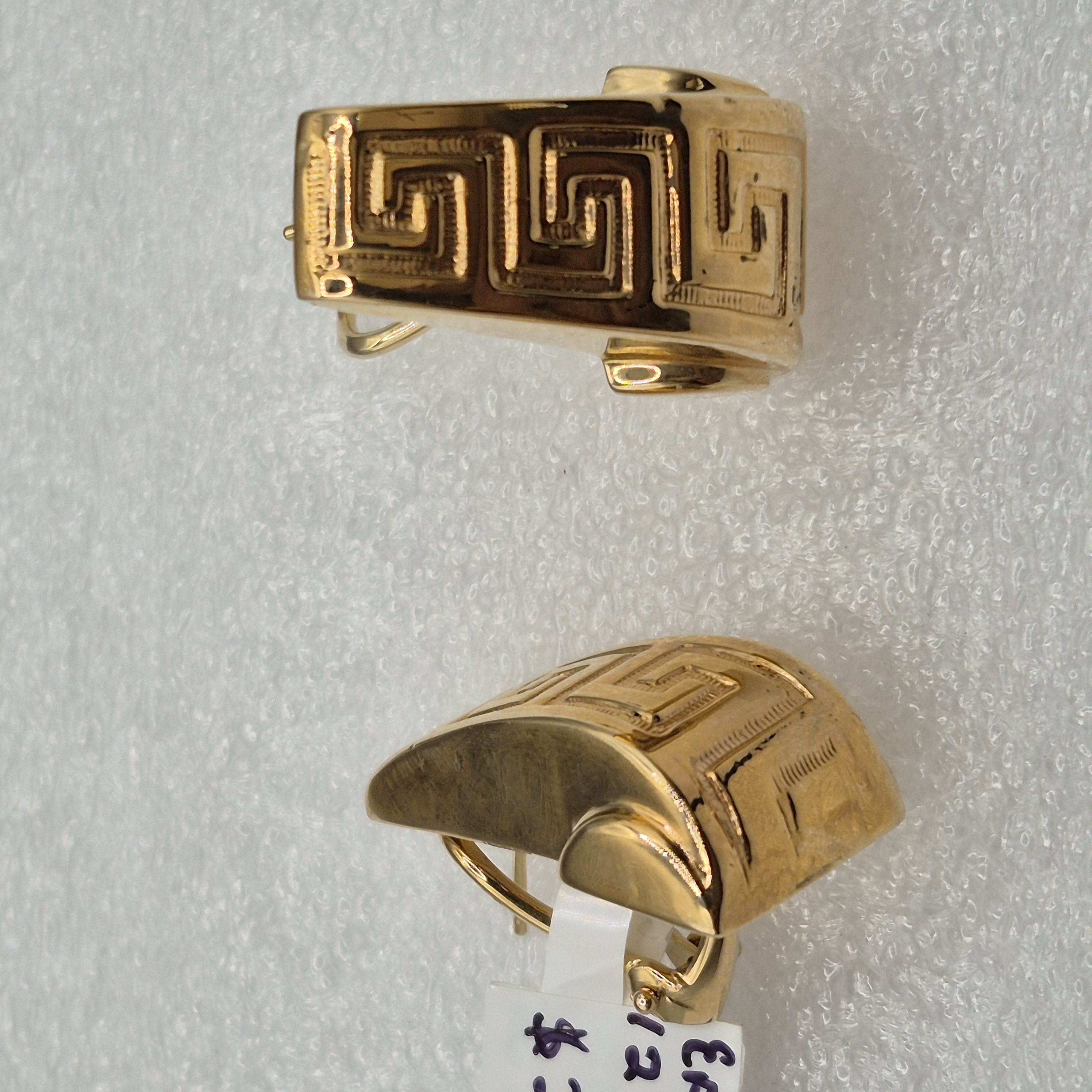 14kt Gold Lady’s Tapering Greek Key Design Earrings w/Omega Backs
