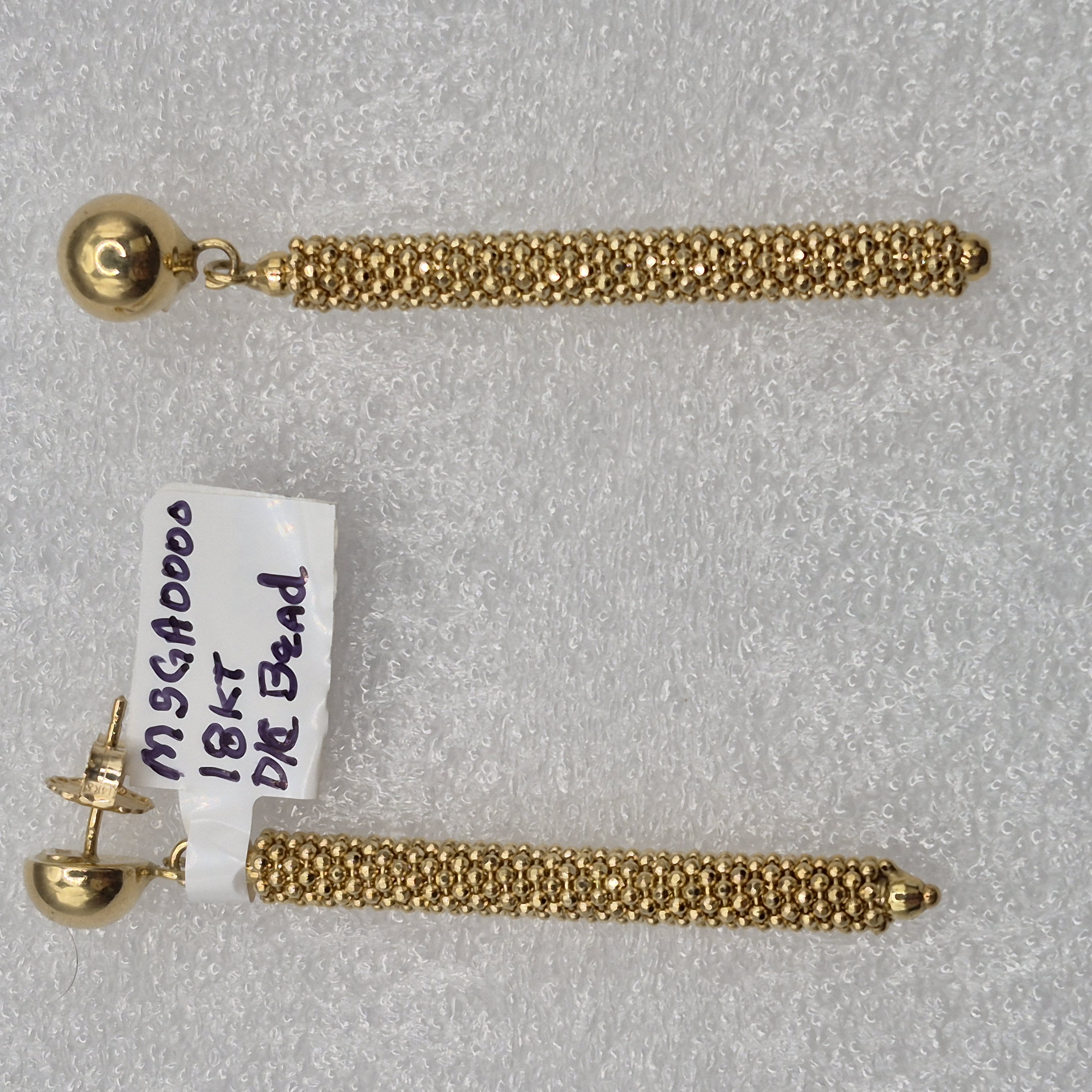 18Kt Lady’s Long D/C Bead Style Fashion Earrings that are 57mm Long