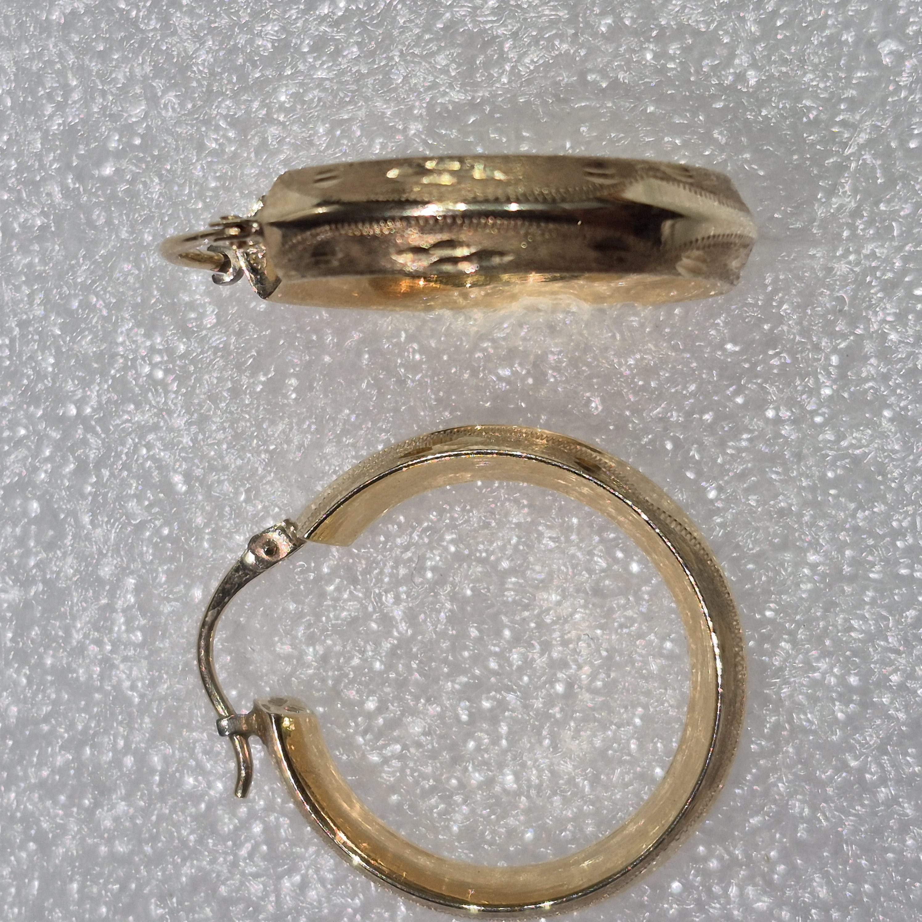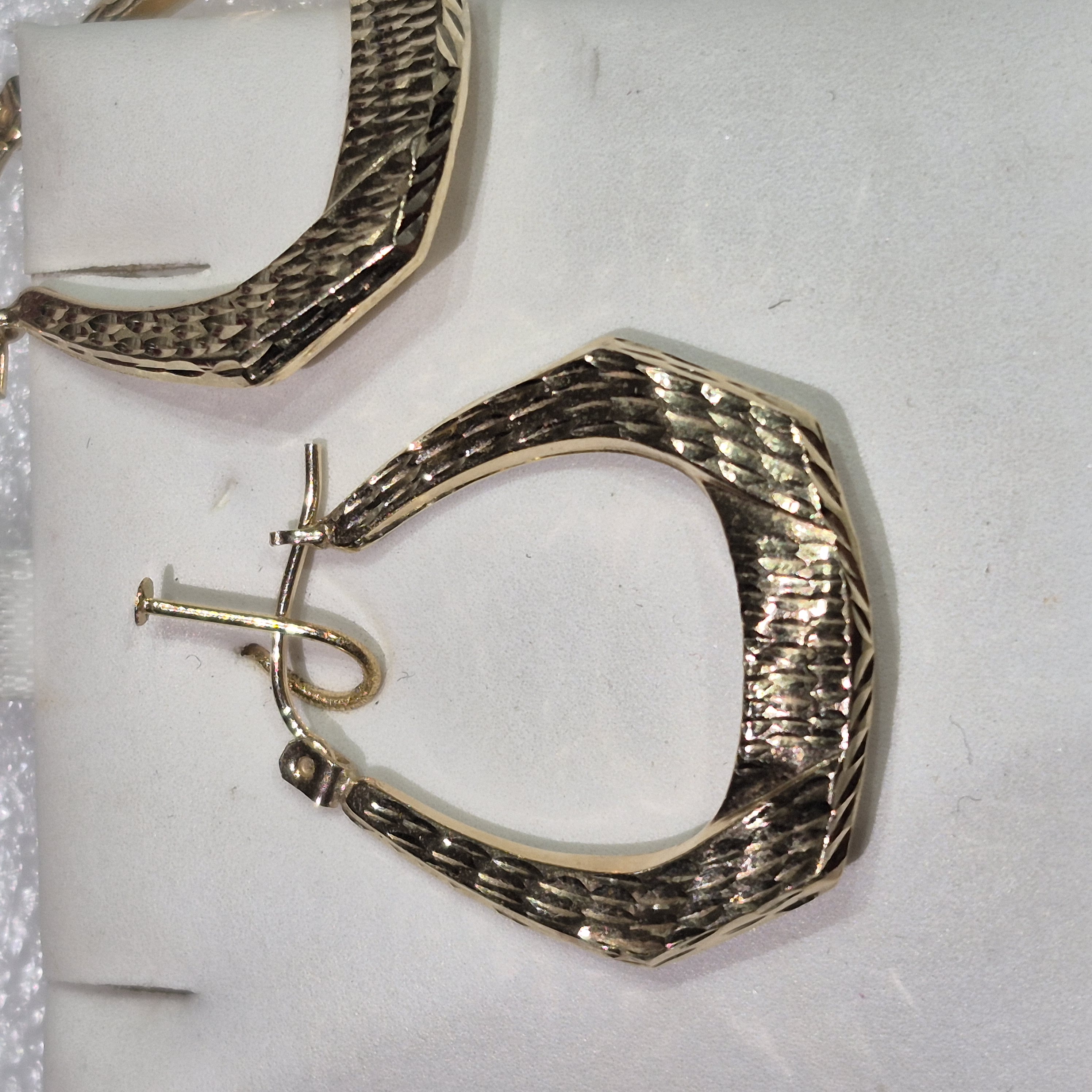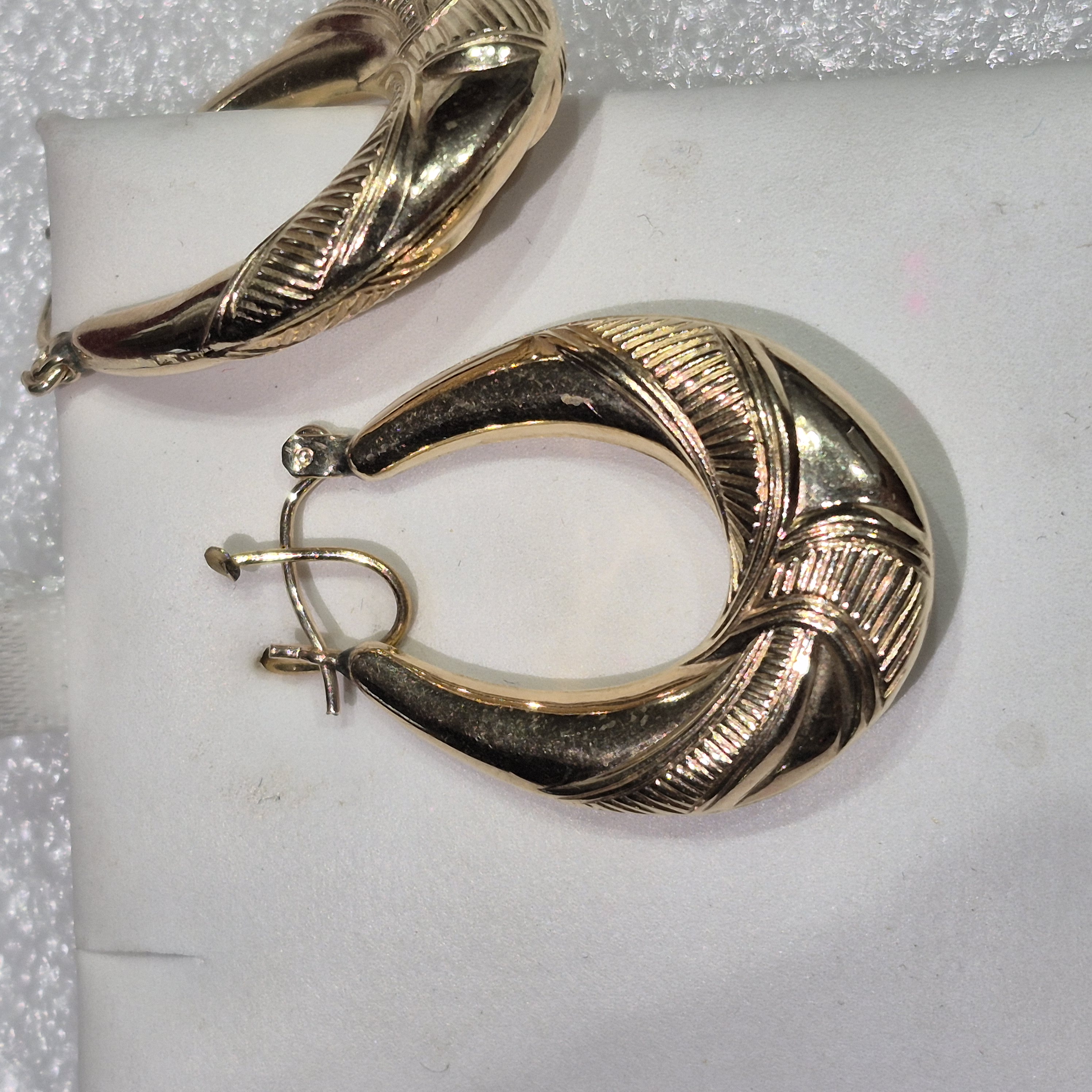 14kt Gold Lady’s Oval Engraved Design Hoop Earrings