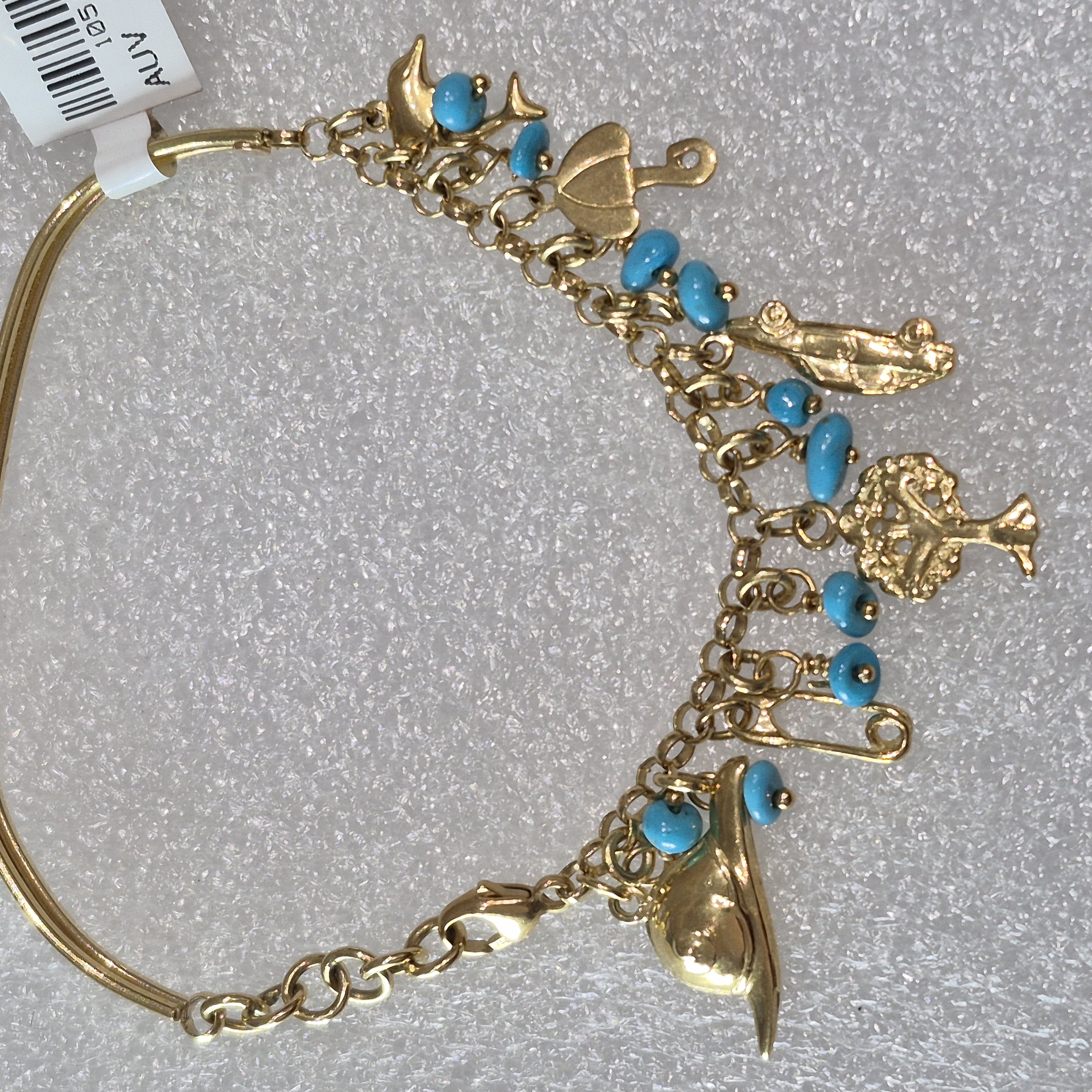 18kt Gold Hand Fashioned Turquoise & Charm Bracelet from Egypt #2