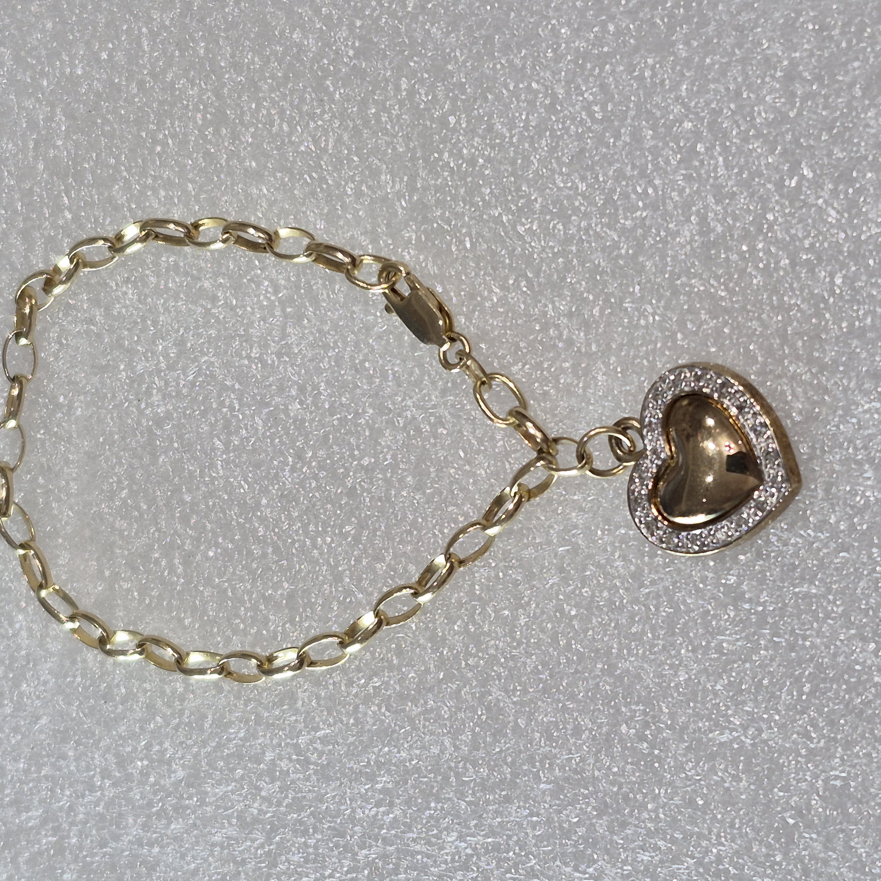 10kt Gold Lady’s Fashion Diamond Heart Charm Bracelet
