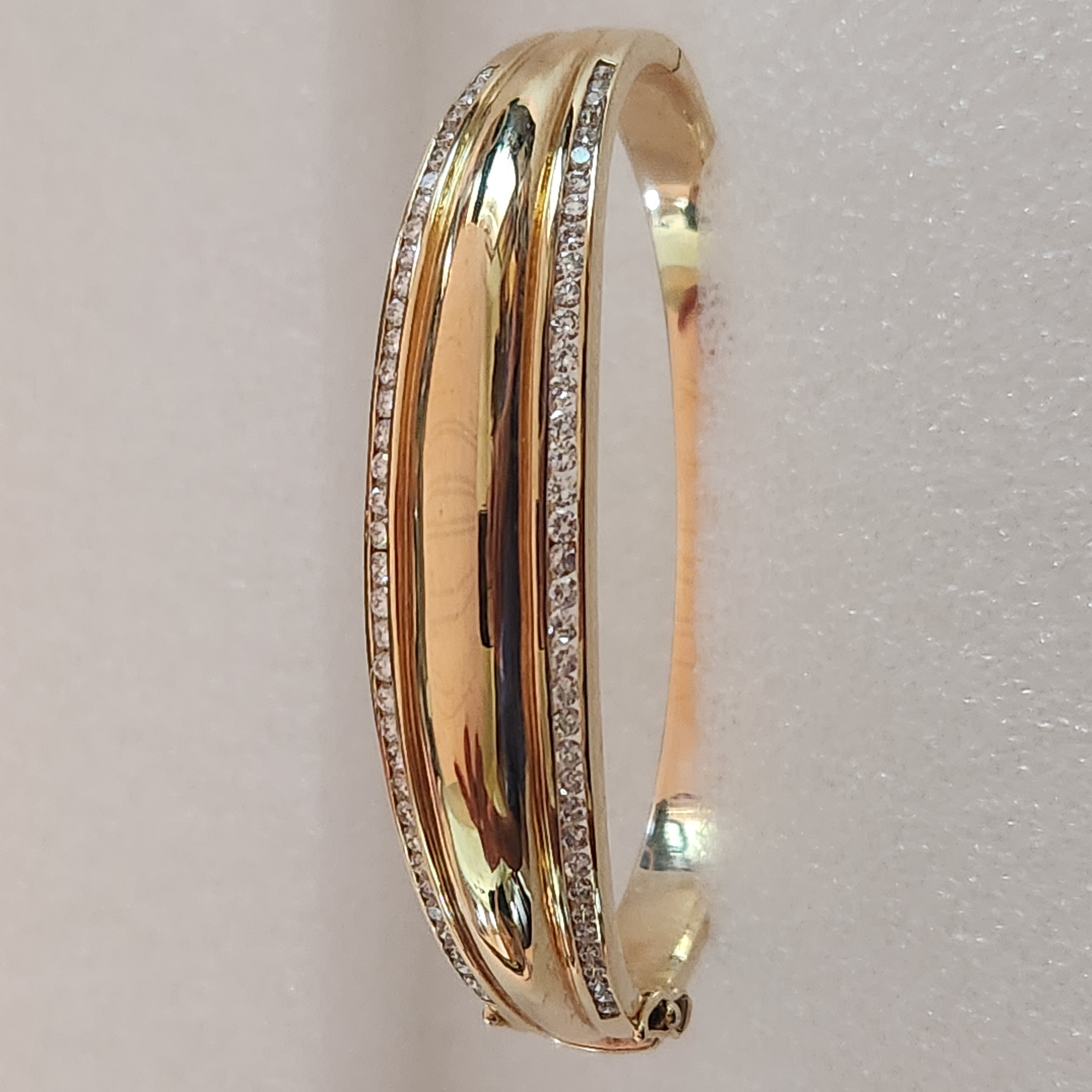 14kt Gold Lady’s 13mm Wide Double Row Diamond Hinged Bangle Bracelet