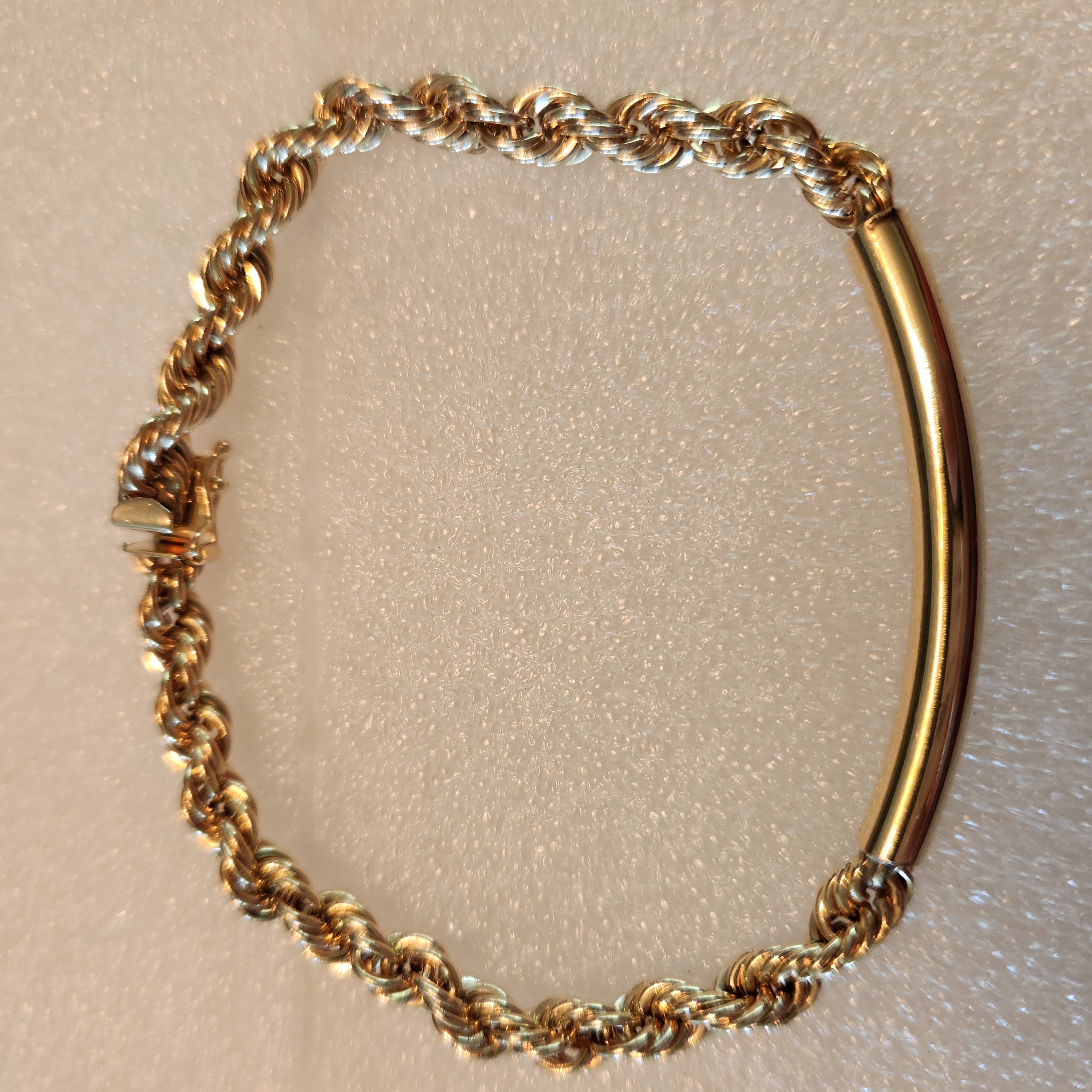 14kt Gold Men’s Bar & Rope Design 8″ Bracelet