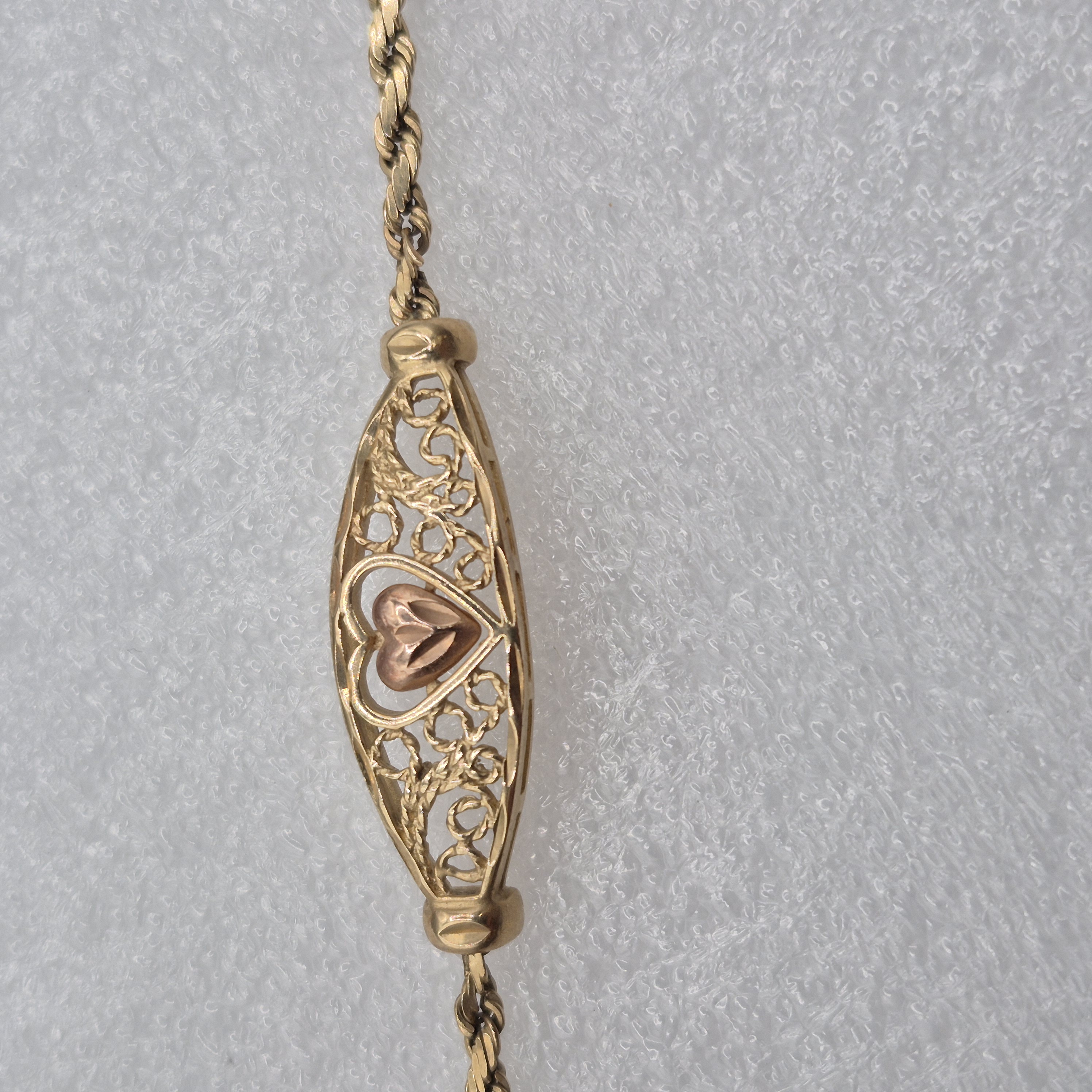 14kt Yellow & Rose Gold Lady’s Two-Tone Double Heart Filigree Bracelet