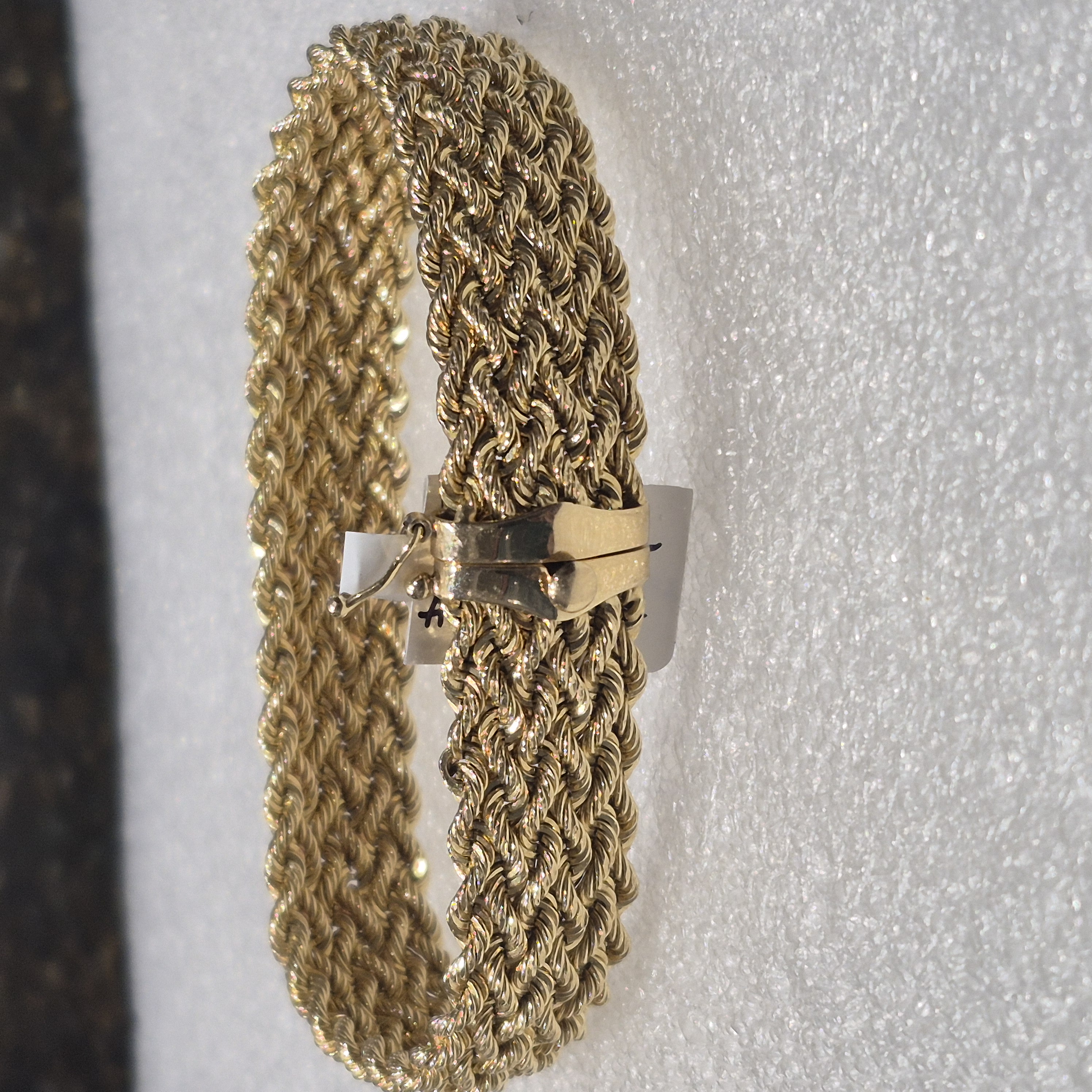 14Kt Gold Lady’s Domed D/C Fancy, Wide Rope Bracelet