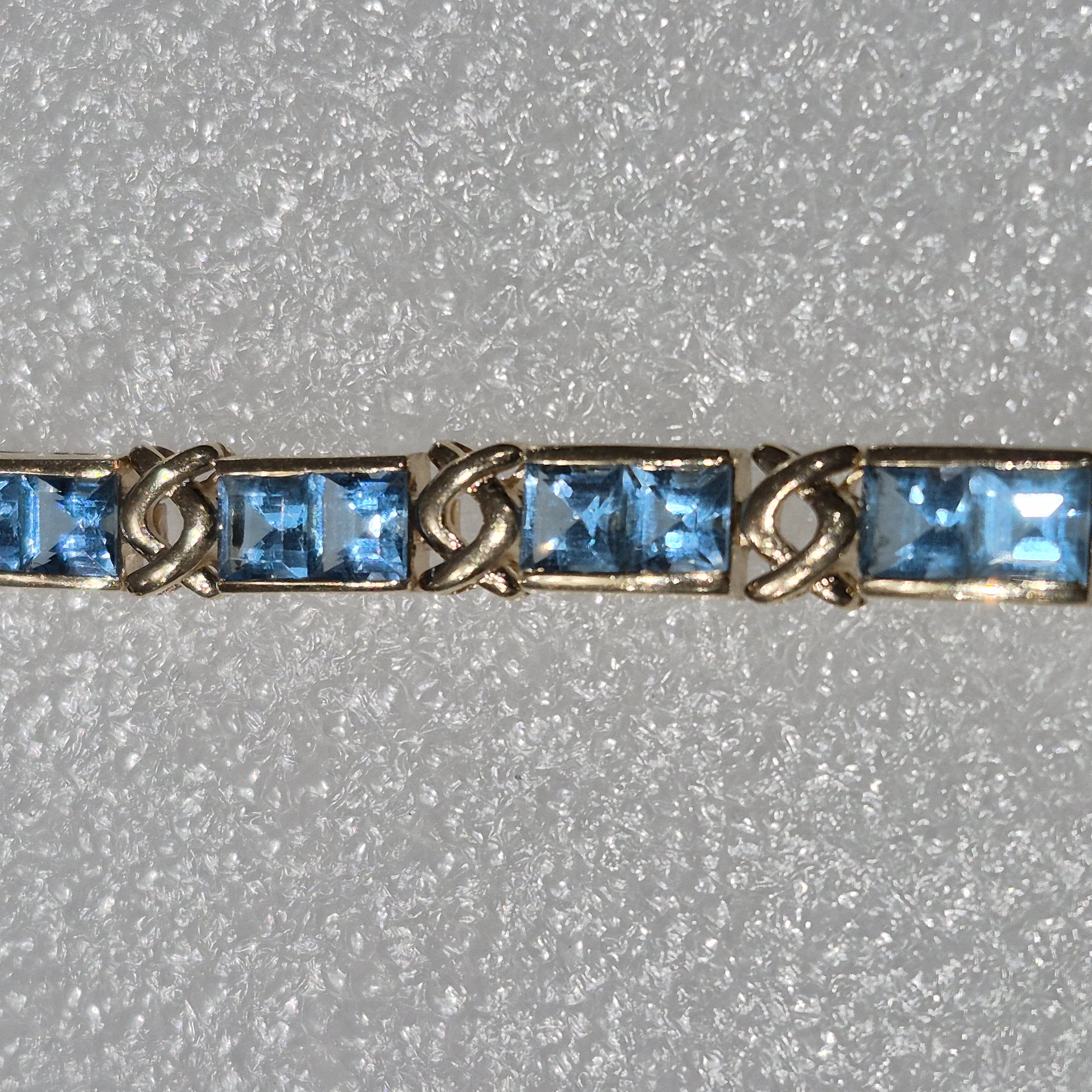 14Kt Gold Lady’s Square Blue Topaz Tennis Bracelet w/28 each 4mm Gemstones