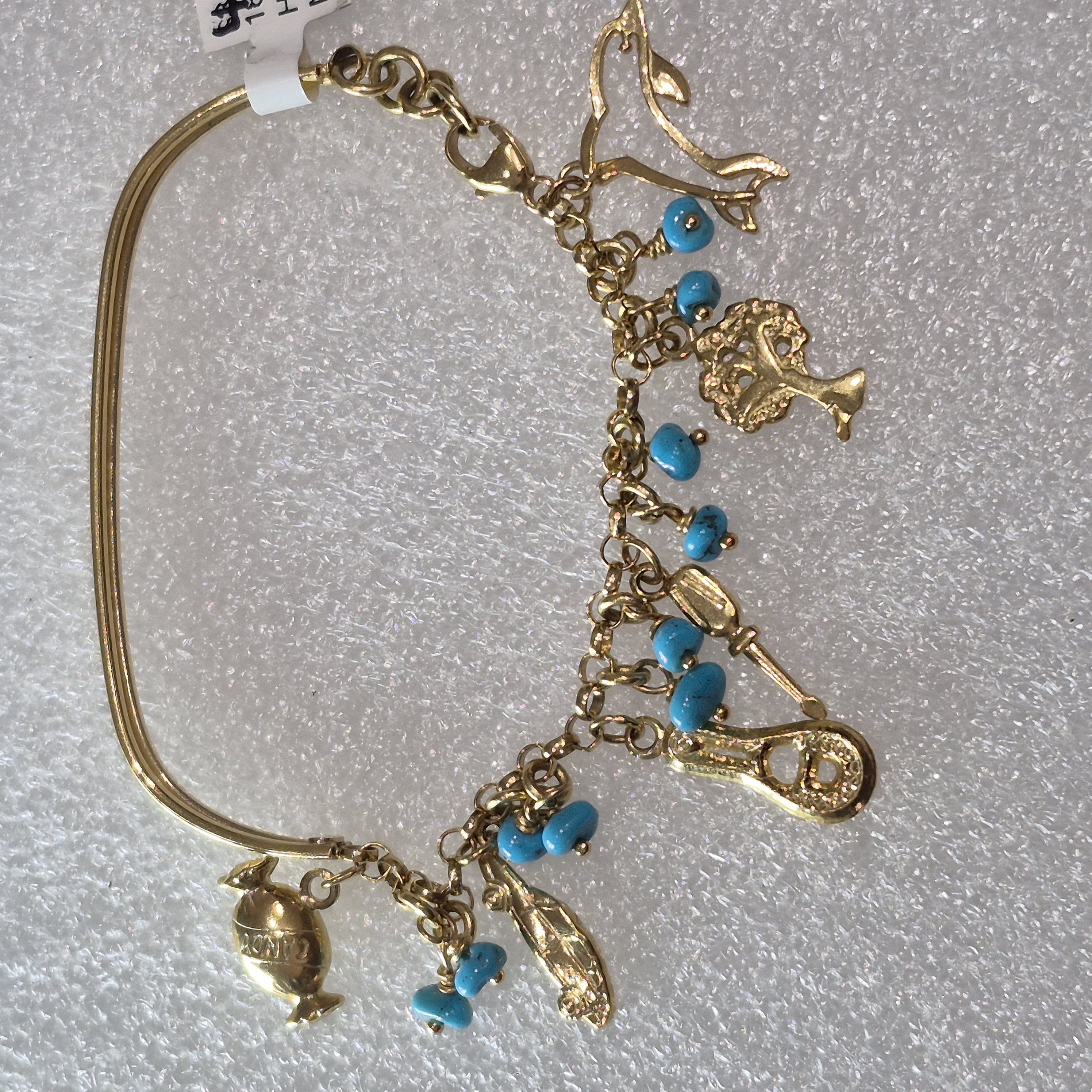 18kt Hand Fashioned Turquoise and Charm Bracelet from Egypt.