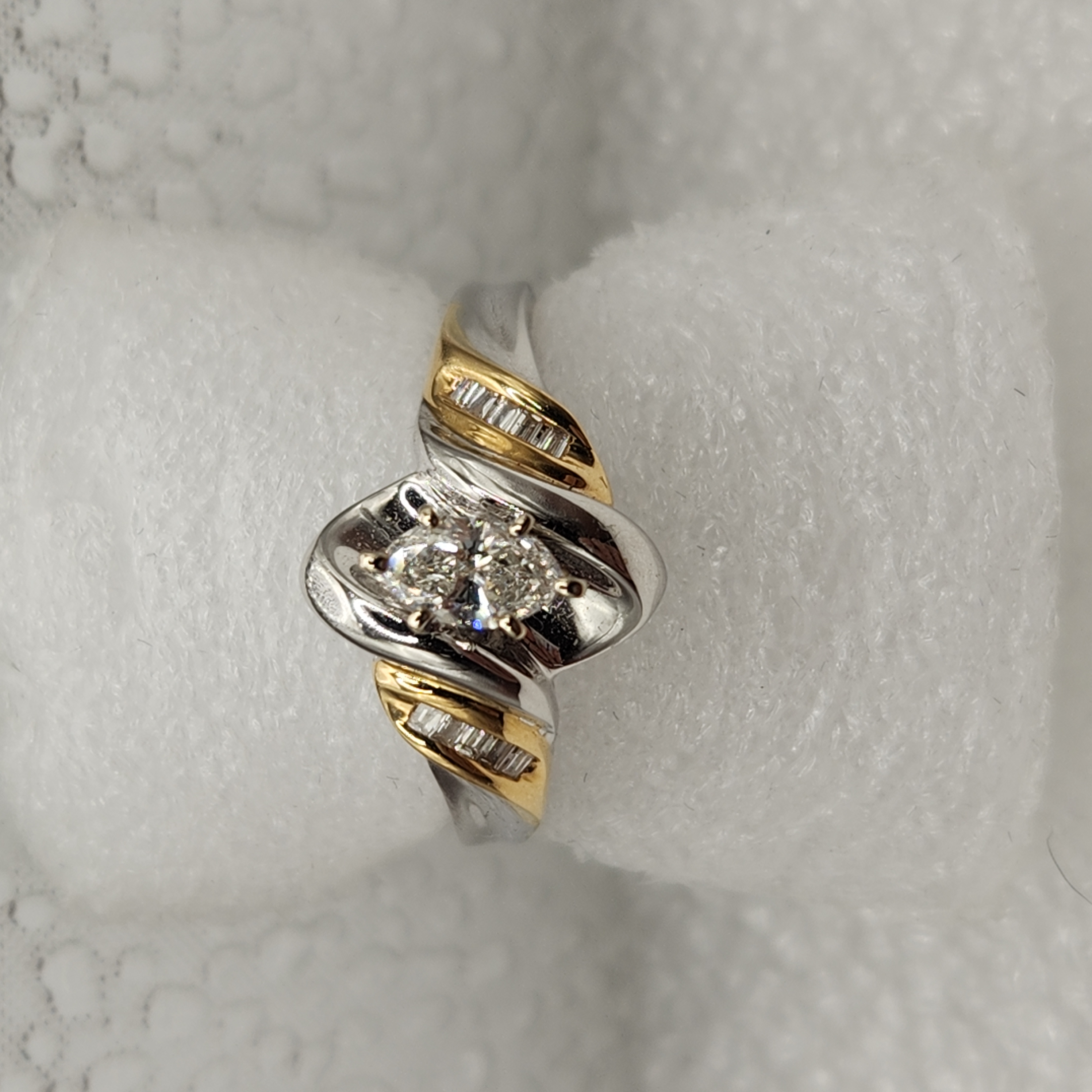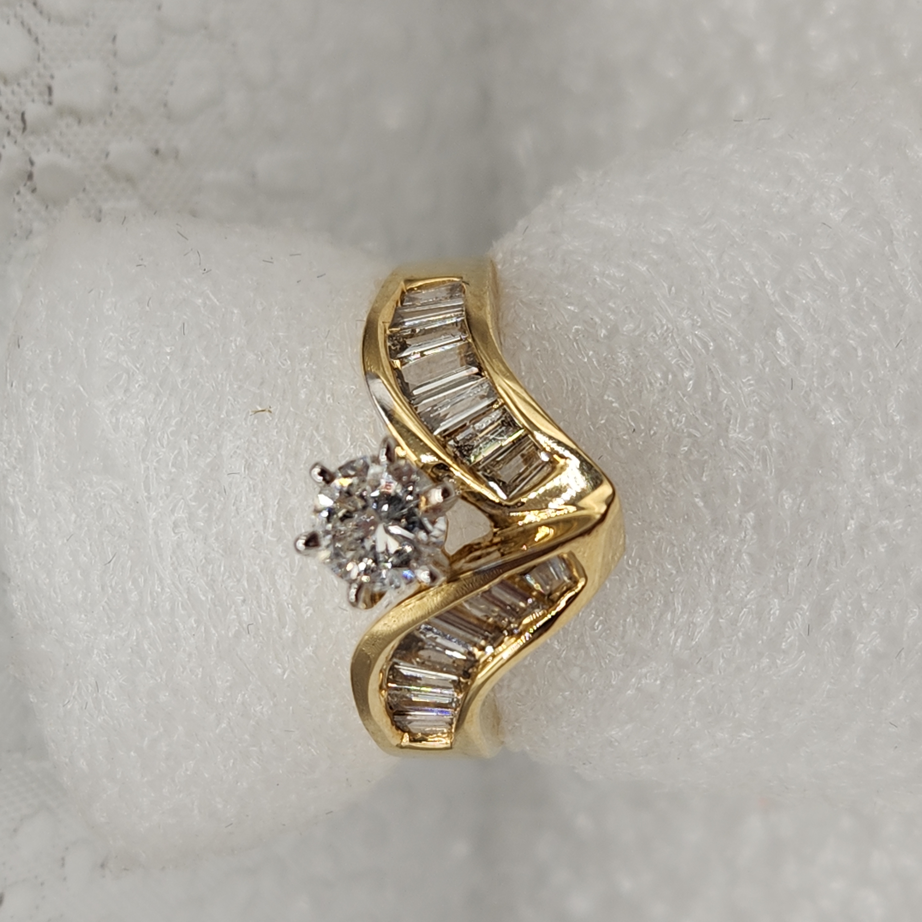 14kt Lady’s Bypass Design Round & Baguette Diamond Fashion Ring w/.75ctw