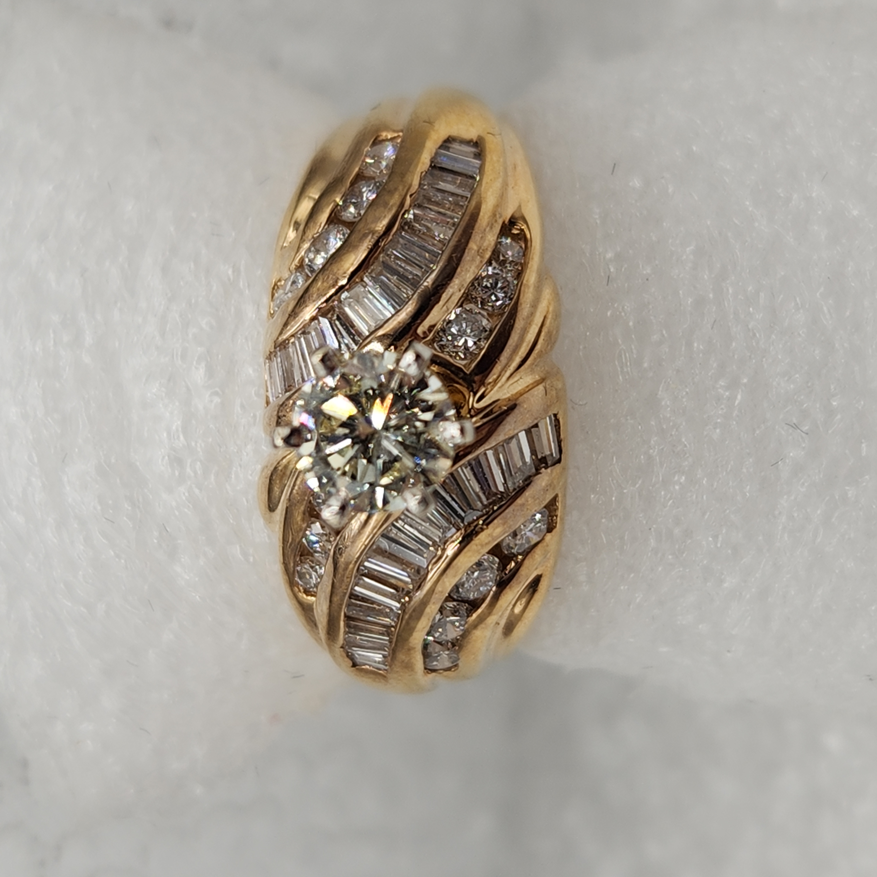 14kt Lady’s Dome Design Round & Baguette Diamond Ring w/1.60ctw