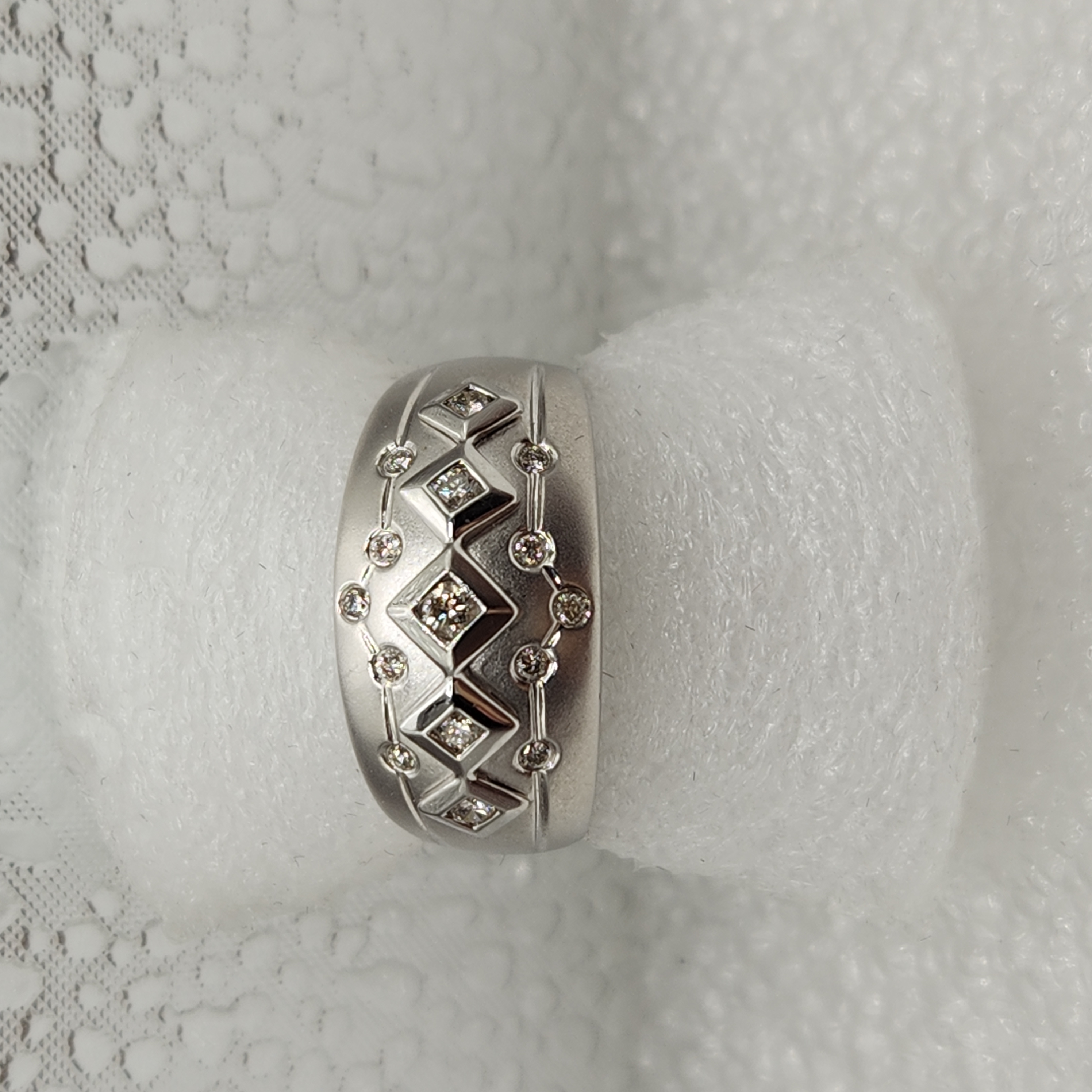 14kt Lady’s 11mm Wide Dual Finish Diamond Fashion Ring