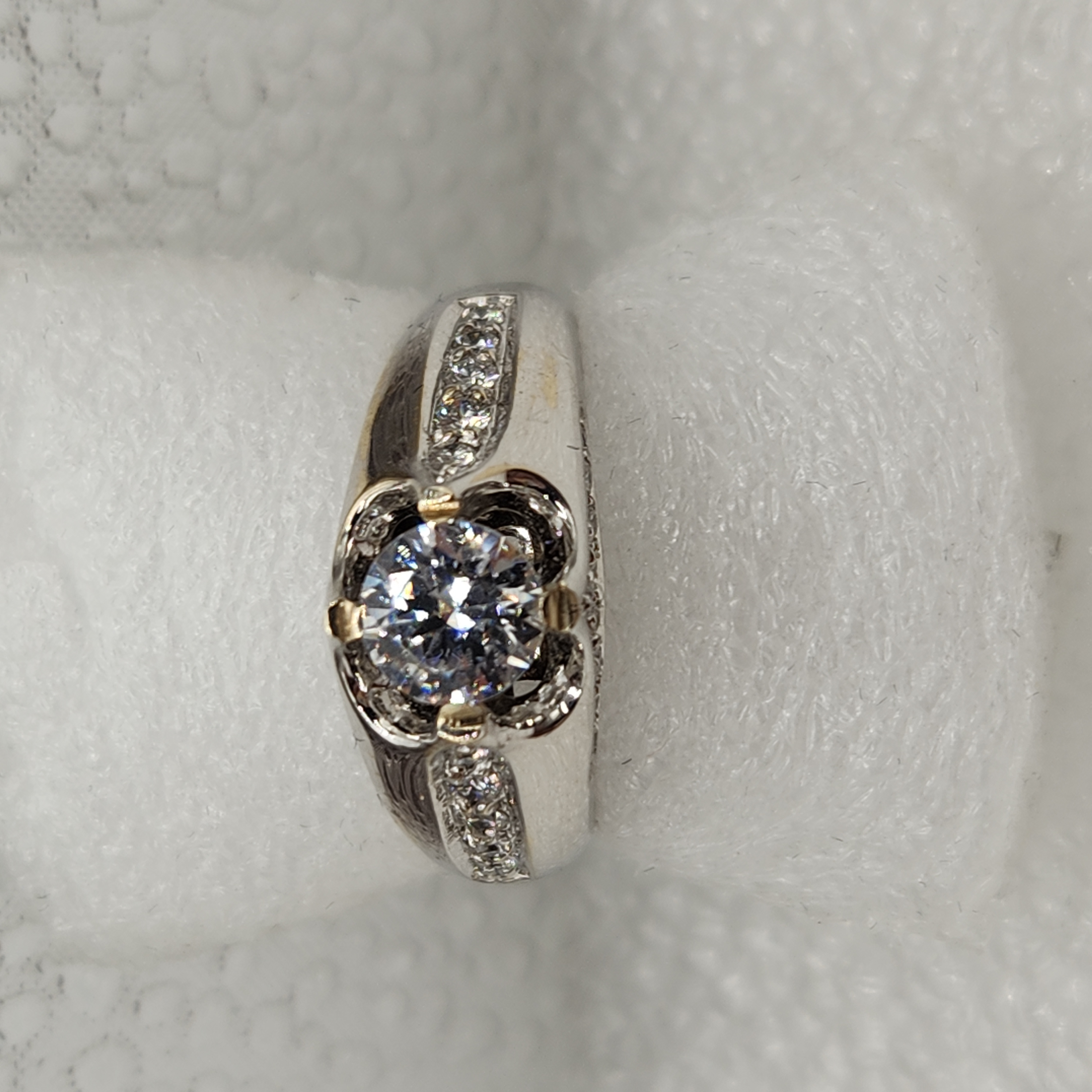 14kt Men’s Diamond & CZ Center Fancy Belcher Ring w/.37ctw