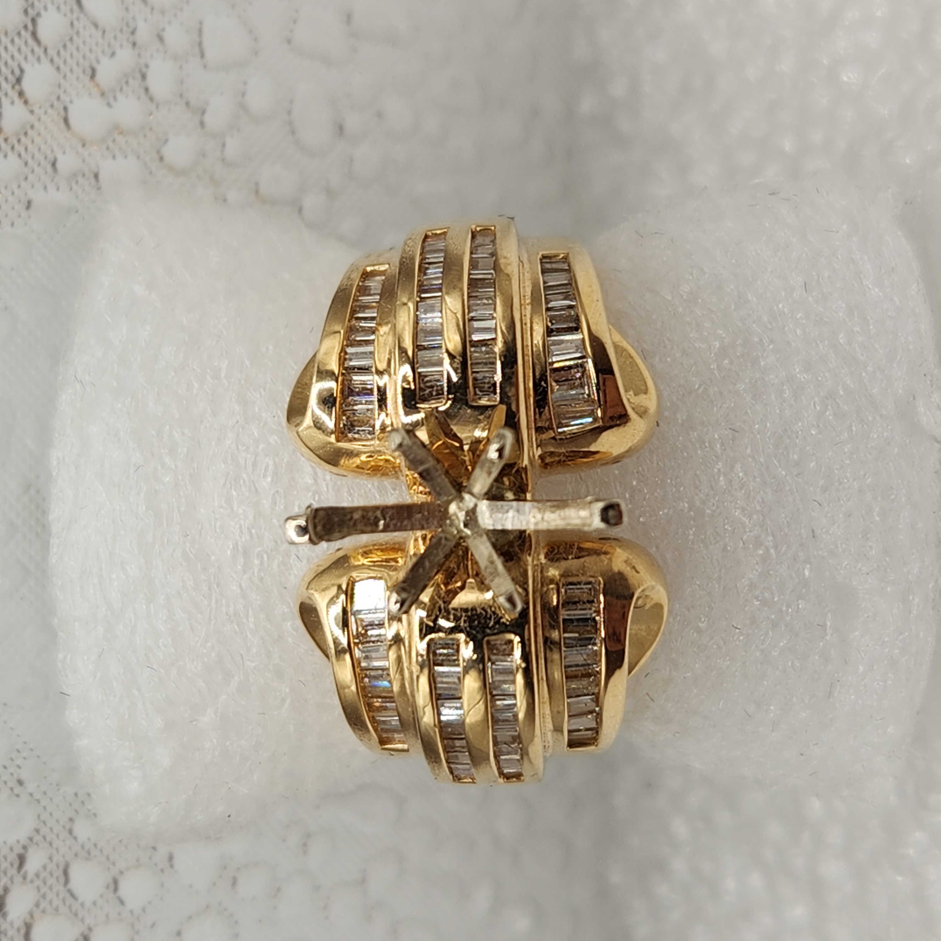 14kt Gold Lady’s Wide, Multi Row Baguette Diamond Semi Mounting w/1.00ctw
