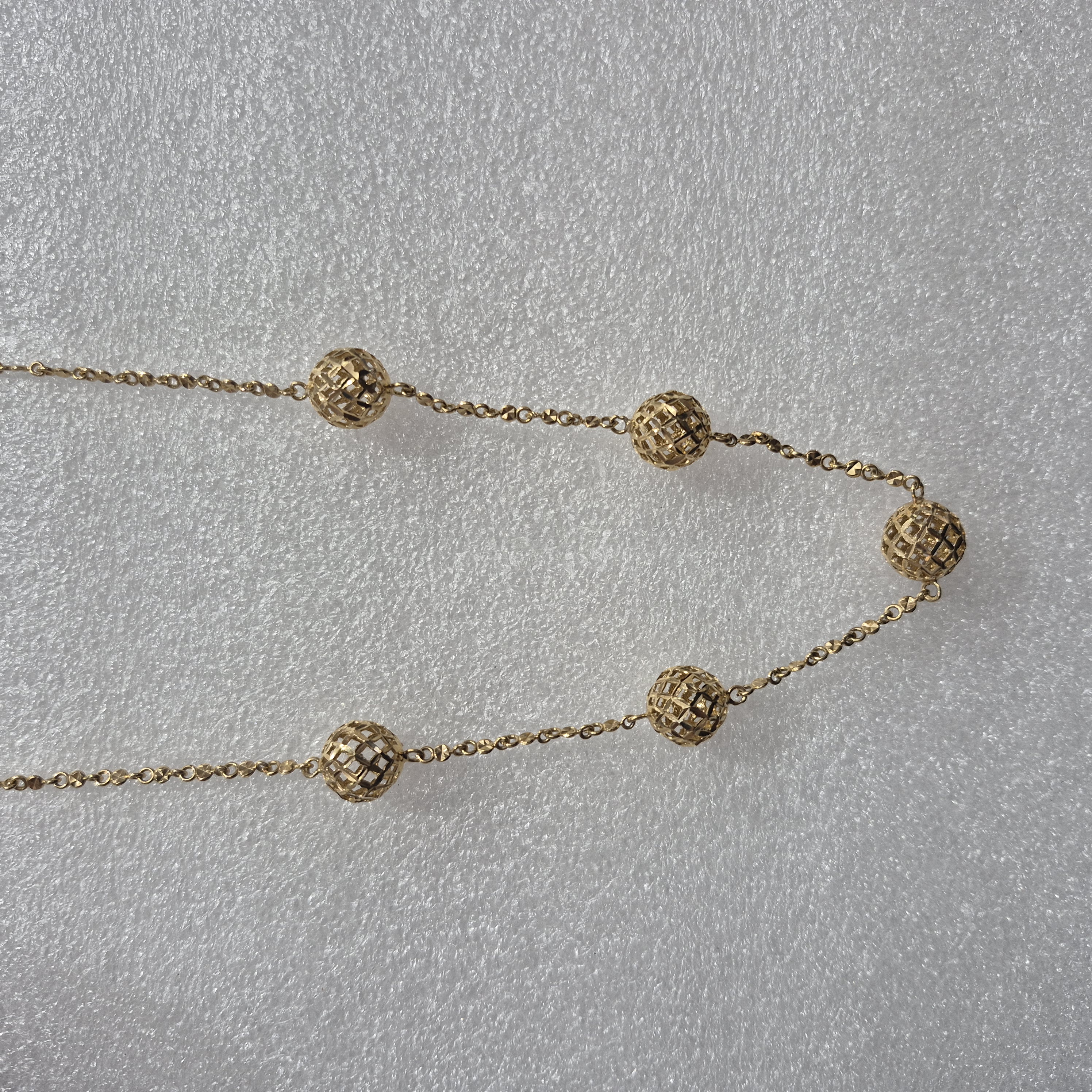 14kt Gold Lady’s 18″ Diamond Cut Filigree Bead & Chain Necklace