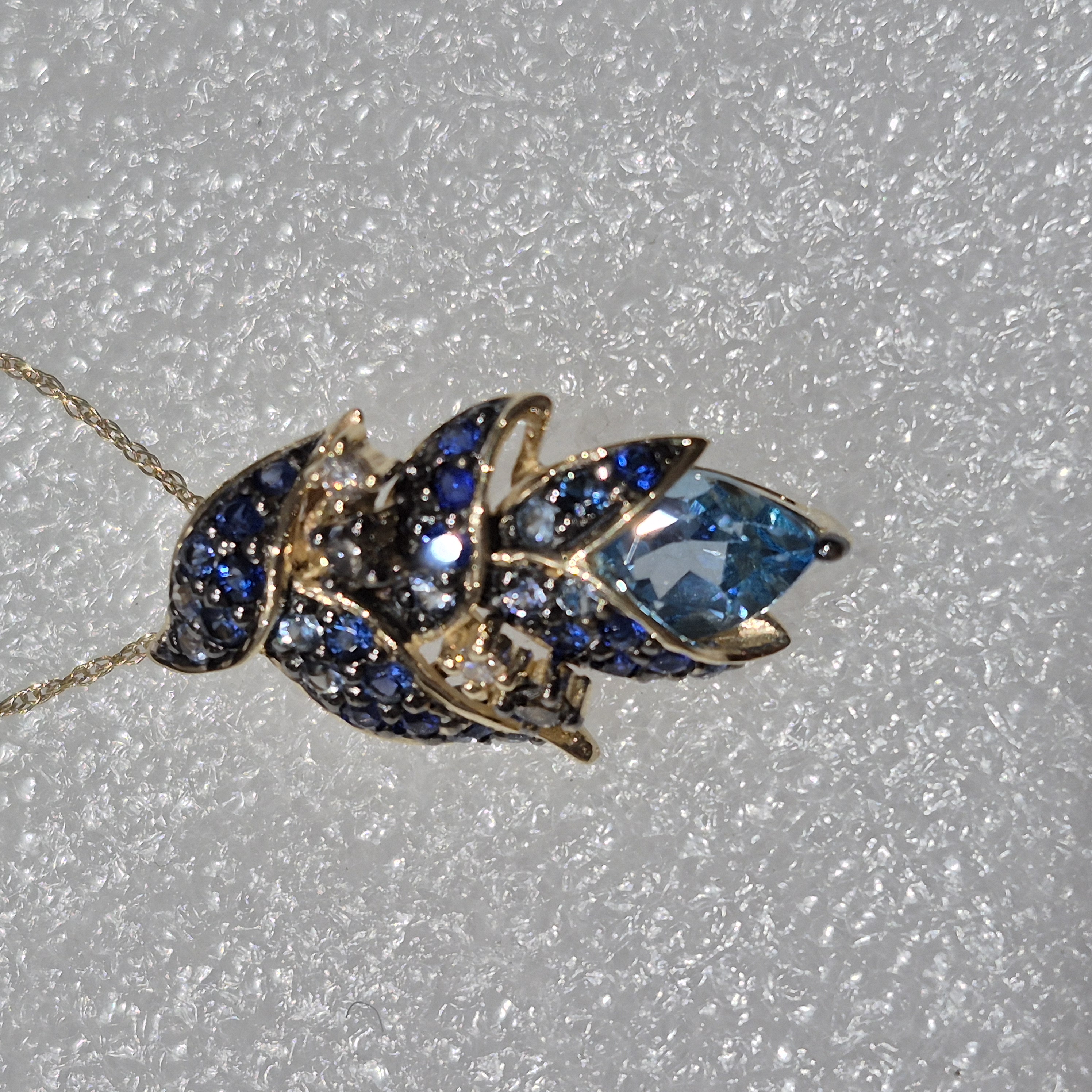 14kt Honey Gold LeVian Torch Ginger Pendant w/Diamonds, Sapphires & B/Topaz