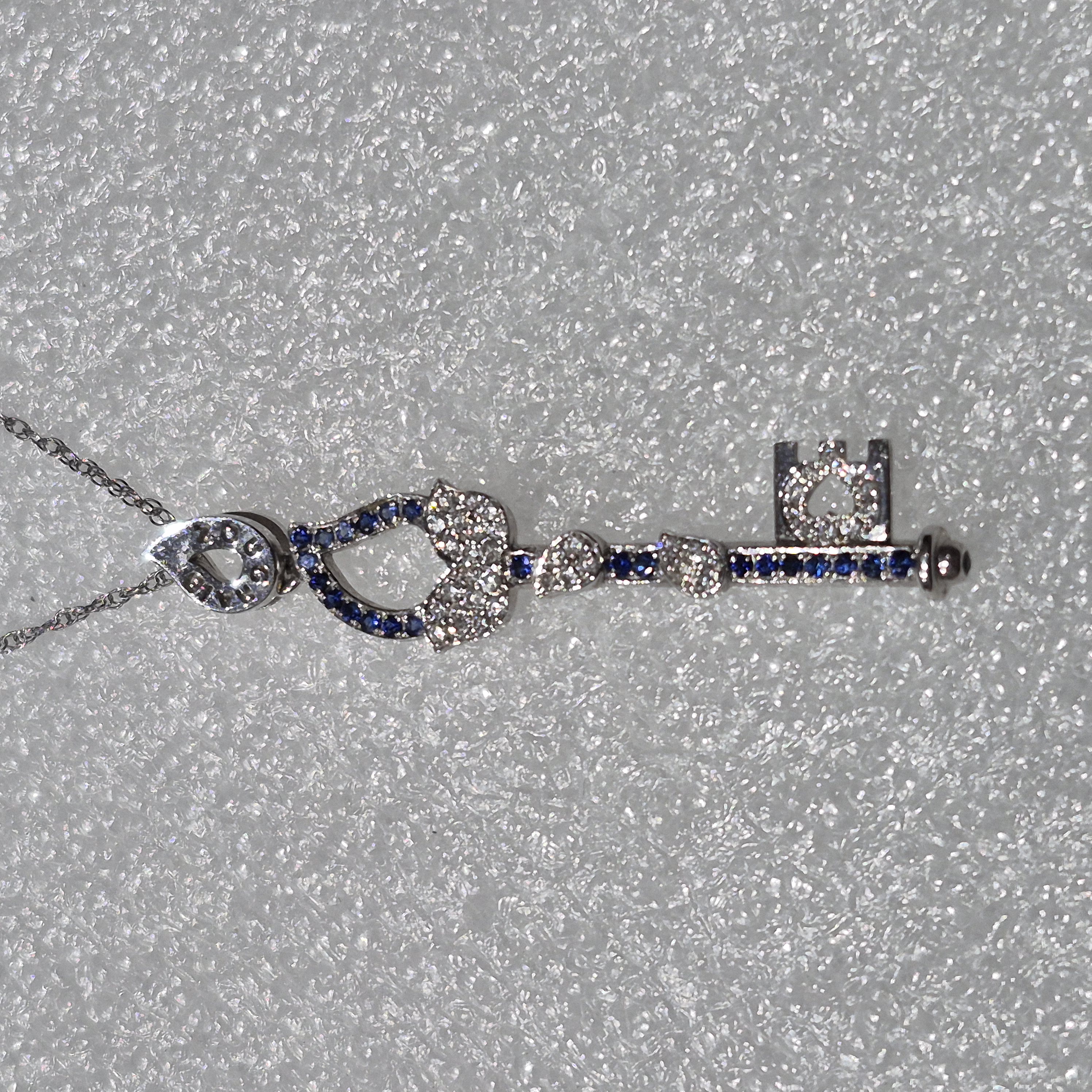18kt White Gold Zoughaib Design Diamond & Sapphire Key Necklace