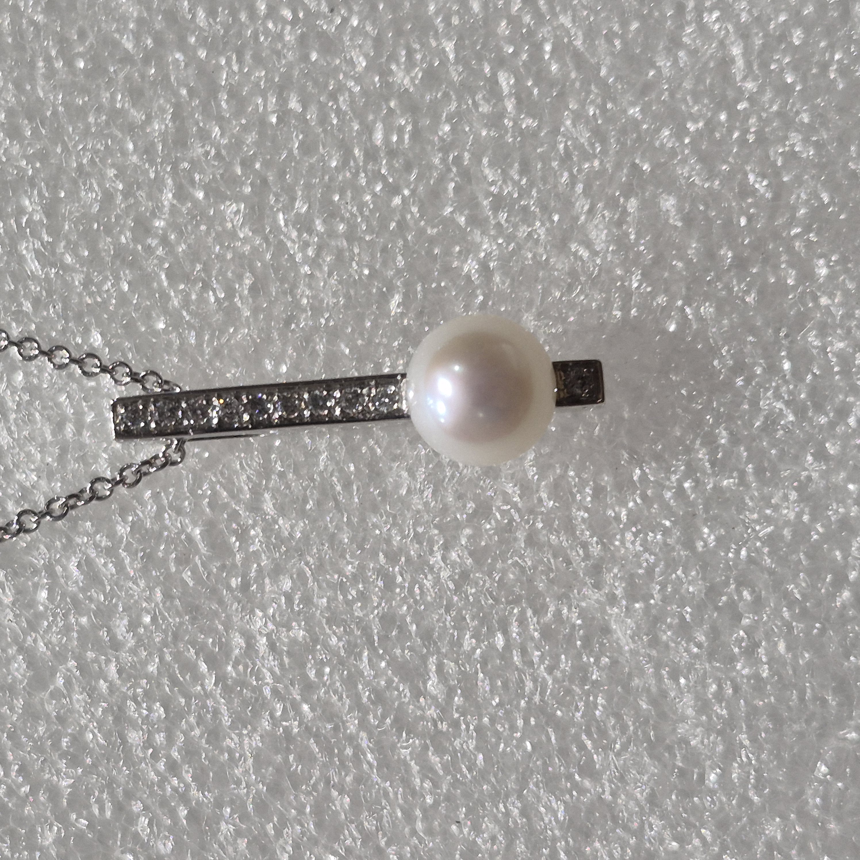 14kt White Gold Lady’s Ultra Modern Design Pearl & Diamond Necklace