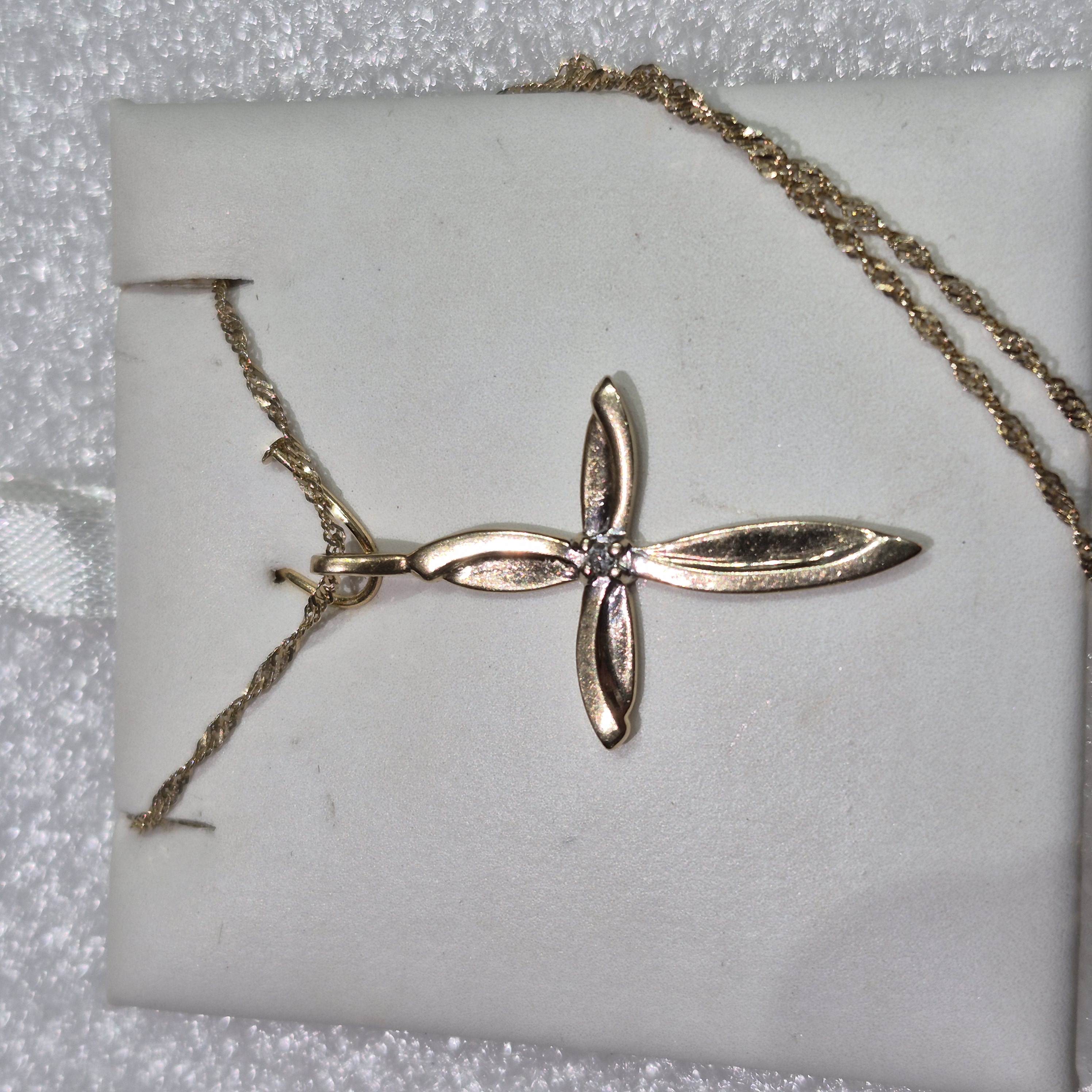 14kt Gold Cross w/Diamond on a 24″ D/C Chain