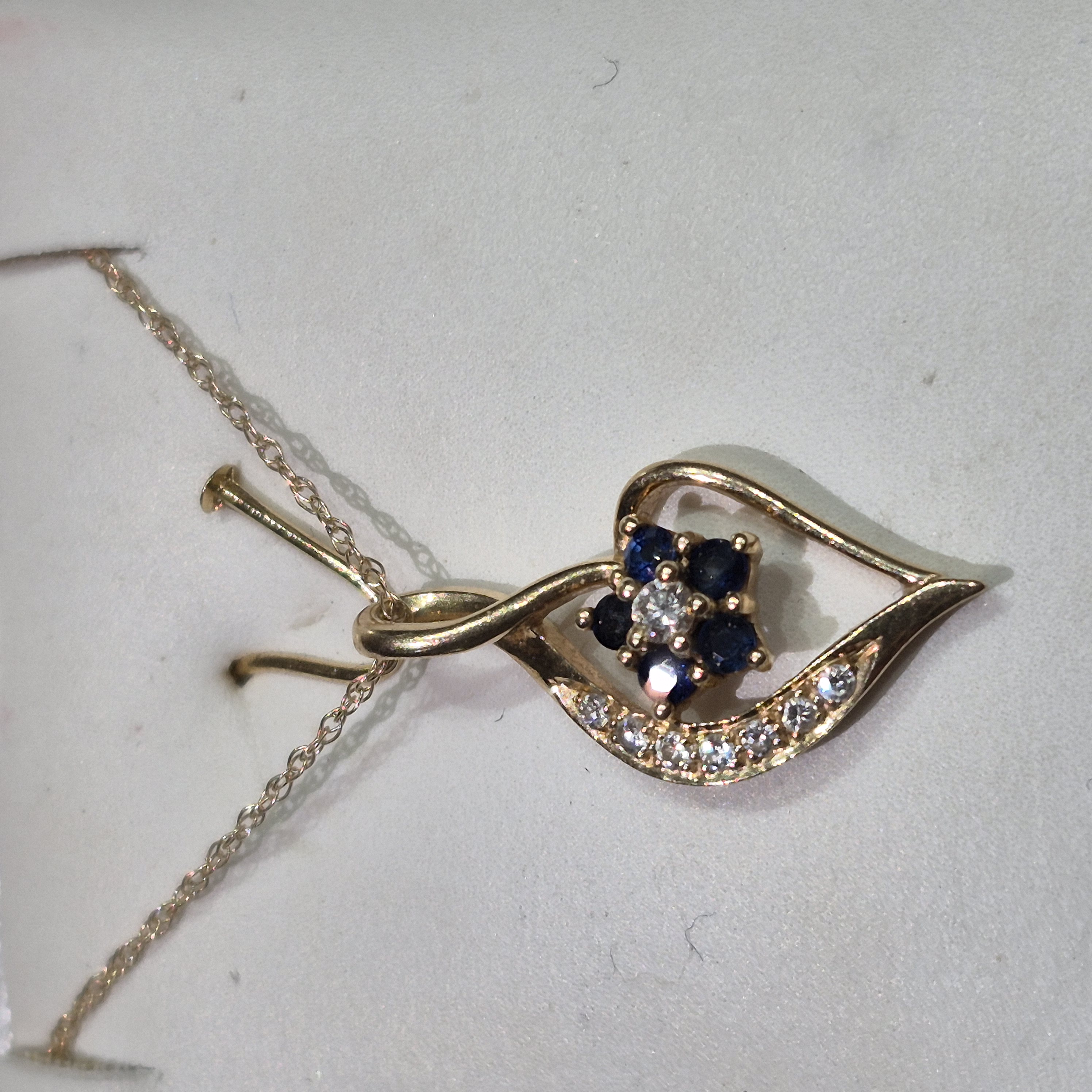 14kt Gold Lady’s Sapphire & Diamond Fancy Heart Pendant