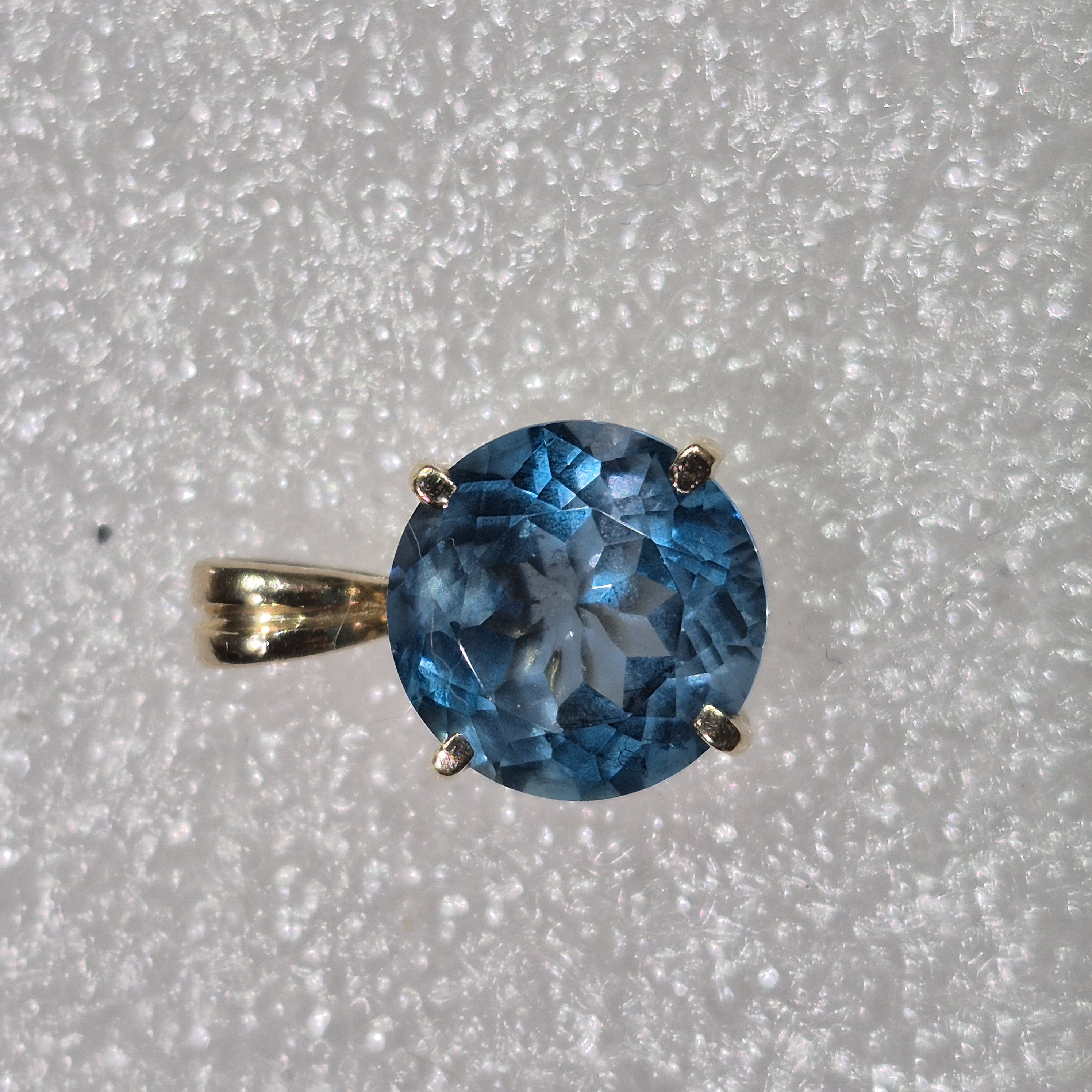 14kt Gold Lady’s 10mm Portuguese Cut Blue Topaz Pendant